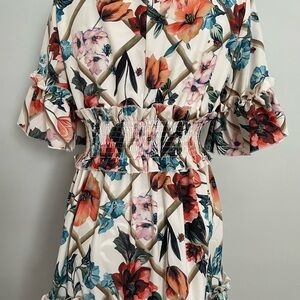 Embrace elegance with this floral ruffle sleeve top, featuring a vibrant mix of colors. Perfect for any occasion.