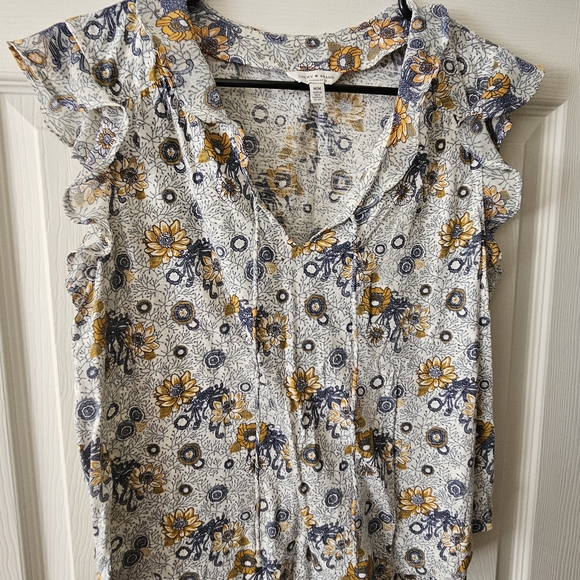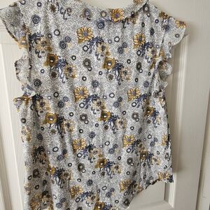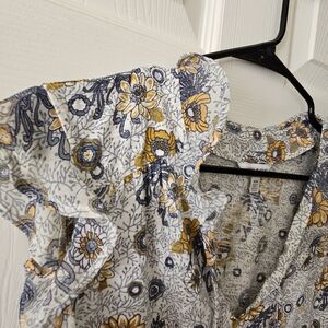 Lucky Brand floral ruffle sleeve top Blue and yellow floral pattern Size M Great Condition