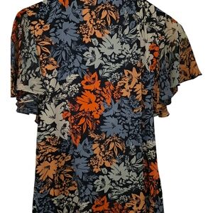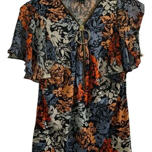 Coco Bianca women's blouse floral print Medium Elegant floral top with ruffle sleeves, featuring a stylish zip up detail. Perfect for any occasion.
