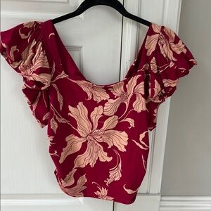 Floral Ruffle Sleeve Top - Raspberry