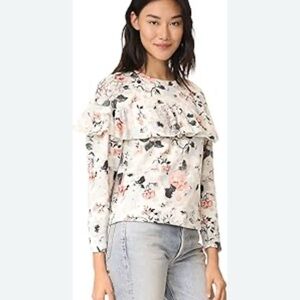 Elegant floral sweater with ruffle detail. Perfect for a chic look. Great condition, so nice on!