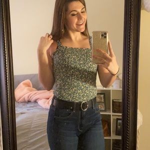 Cute green ruffled hem floral tank top from American Eagle. Like new no flaws, barely worn.