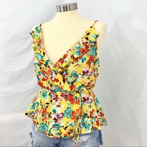 Floral Ruffle Tank Top | Boutique Brand Soft chiffon material. Ruffle trim V cut. Faux side tie. Size L