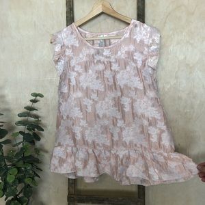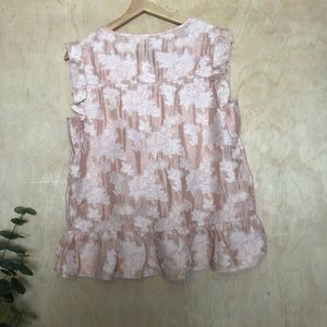 Lauren Conrad Floral Sleeveless Blouse in Blush. Ruffle detailed hem and sleeve. Beautiful texture to this top. No flaws, EUC. Size Medium.