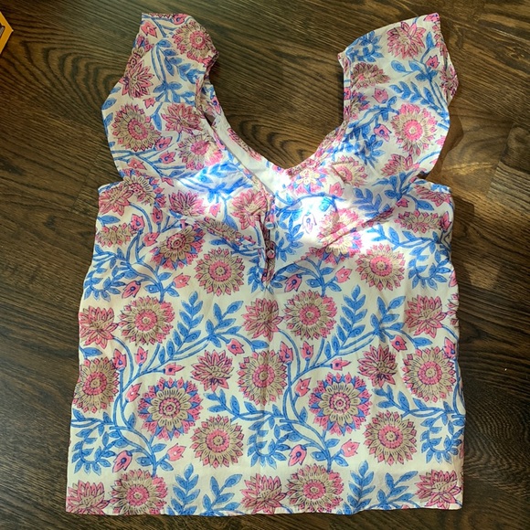 NWOT 3 button upper, ruffle tank sleeves, floral print, fully lined, re-imagined line by JCrew