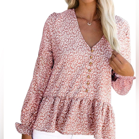 Floral Top with Ruffle detail on sleeves and hemline Button details Excellent condition 97% polyester, 3% spandex size large