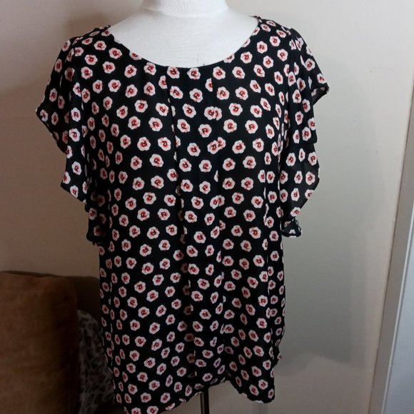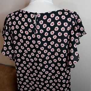 Size X Large Great condition Cute floral details, semi sheer, ruffled sleeves.