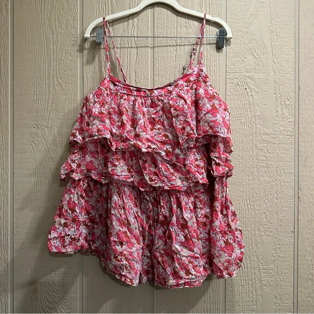 Chic top with floral print and ruffle details. Perfect for a casual day out.