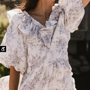 Floral Ruffle White Dress