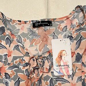 Floral Ruffled Long-Sleeved Tunic with Tie V-Neck