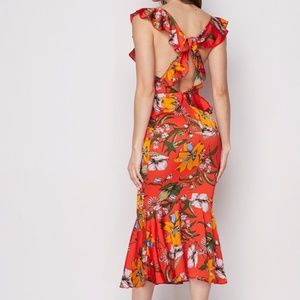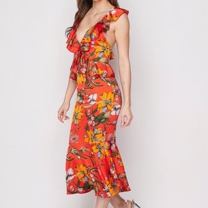 🐦🔥Floral 🐦🔥 Ruffled Mermaid Midi Dress - Red (B)