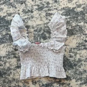 Chic and stylish, this floral ruffled top is perfect for any occasion. The delicate white fabric adds a touch of elegance to your wardrobe.