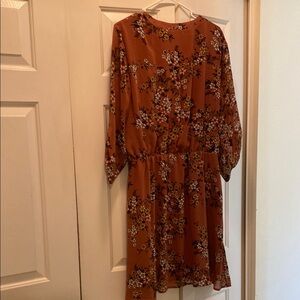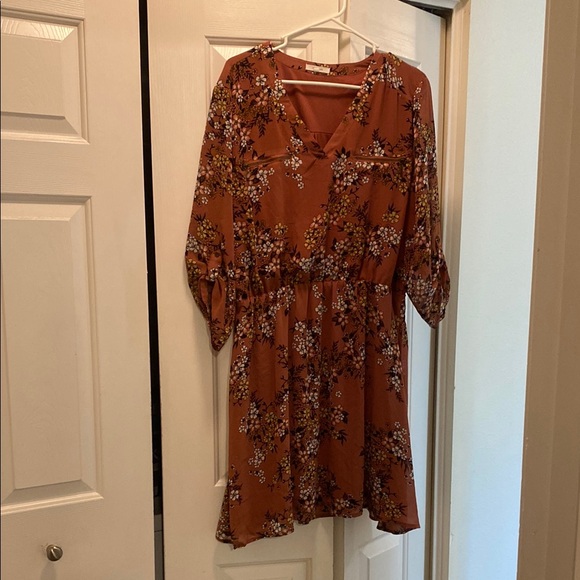 Embrace elegance with this floral rust dress. Perfect for any occasion, it features a flattering fit and a beautiful floral pattern.