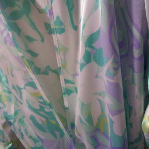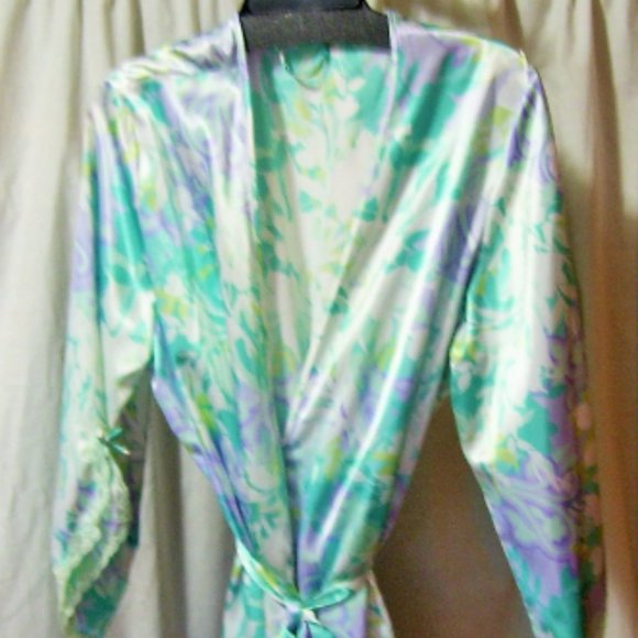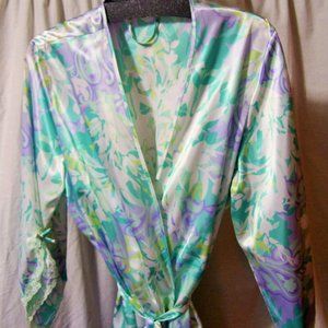 Floral Satin Short Kimono Robe Aqua White Lavender NWOT Size M/L