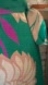 Vibrant green wrap skirt with floral design. Features purple and cream flowers. Adjustable & fits 36”-48”