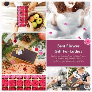 🧿Gift box size: 8.85 x 4.48 x 1.85 in. Come with 18 pcs soap rose in a gift box. Petals Material: Soap(The flower is made of soap which can use to wash hand or any romantic event). Made from the special soap to make sure the rose will not easy to squished during shippment, the soap may not easy to disslove in water.