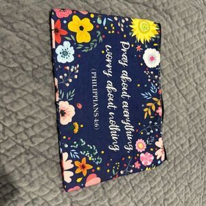 This vibrant floral pouch features the uplifting scripture “Pray about everything, worry about nothing” (Philippians 4:6) printed on a deep navy background. Perfect for holding makeup, pens, or daily essentials, it’s both functional and inspiring. The colorful floral accents make it a cheerful gift for a friend—or yourself!