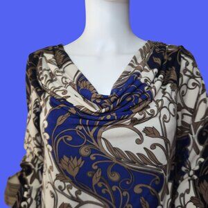 Floral Scroll Print Cowl Neck Midi Dress With 3/4 Sleeves - Size 8