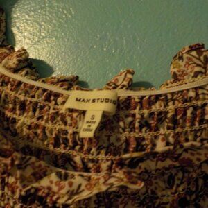 Elbow-length sleeve floral scrunch blouse from Max Studio. Multiple pink and red tones. Size S but fits M too.
