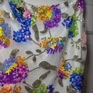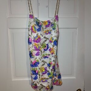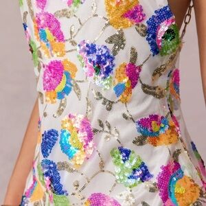 Shine in this stunning floral sequin dress featuring elegant chain straps. Perfect for any special occasion.
