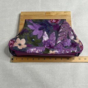 Floral Sequin Embellished Clutch With Velvet & Wooden Frame purple shein