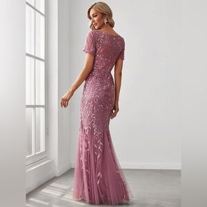 🆕 Floral Sequin Print Maxi Long Fishtail Formal Dresses With Half Sleeve
