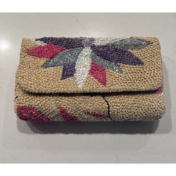 Floral Sequin Rafia Evening Clutch Purse Wedding Prom Vintage Inspired Boho