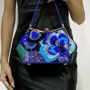 Dazzle with this stunning floral sequin shoulder bag in royal blue. Perfect for elevating your style with a touch of glamour.