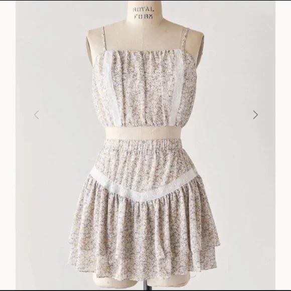 By adored Vintage - floral two piece set - skirt and crop top with lace detail. In EUC - I wore once around the house.