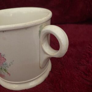 Floral Shaving Mug is in very good condition except around the top of the handle is some green that I can’t get off. The brush is in excellent condition. It is Crabtree and Evelyn made in Germany.