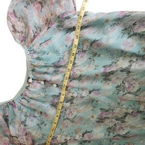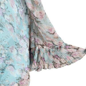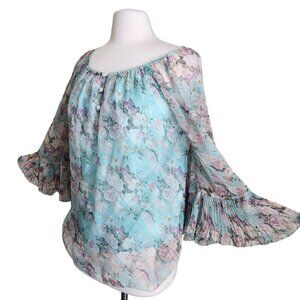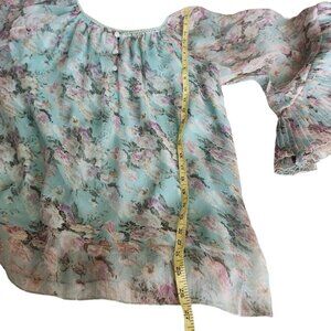 Floral Sheer Bell Sleeve Pleated Blouse Rose Pastel Sheer Size Small Romantic