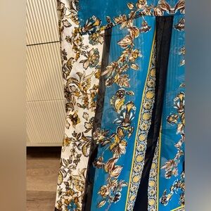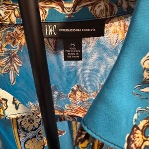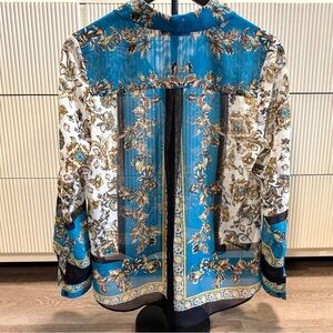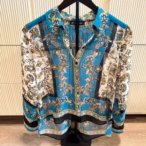 Floral Sheer Blouse with Blue and Black Accents. Women’s size petite small.