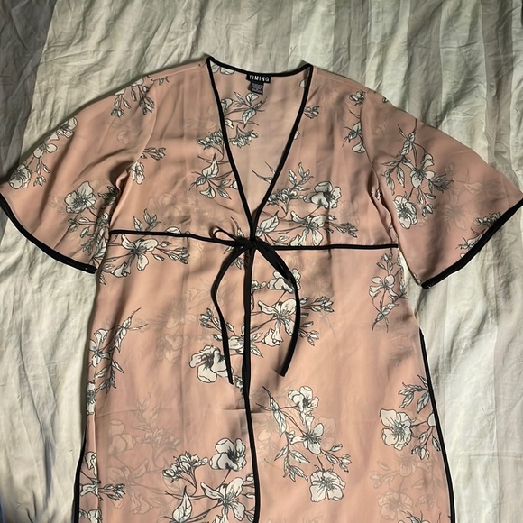 Floral Sheer Robe with Short Sleeves and Front Tie