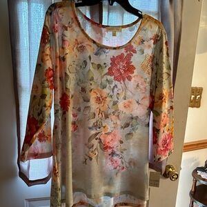 Beautiful floral sheer tunic top with vibrant colors. Perfect for business casual or evening wear. Pit to pit 21 in. 95% polyester 5% spandex