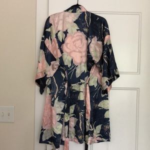 Short floral robe. Only worn once! Beautiful pink, blue, and green pattern.
