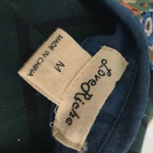 Button up floral silk dress, with chambray accents, brass buttons, and cutouts at back and collar. Wore this once to a wedding in Florida but alas it is now too small for me. Sad to see this go as it's PERFECT for spring! Size M but fits more like a Small. Such a fun silhouette! Measurements laying flat : Bust = 16", Natural Waist = 13.5" Flares from the waist down.