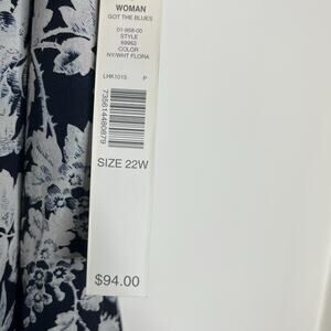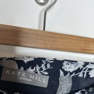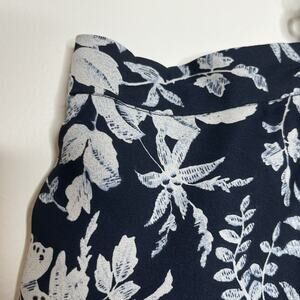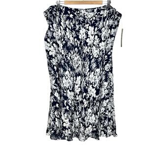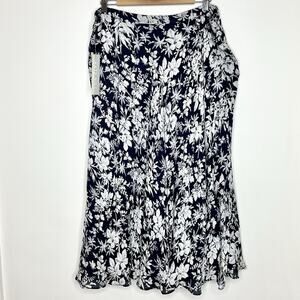 Floral Silk Midi Skirt Navy Blue White Womens Size 22W Kate Hill Coastal Summer