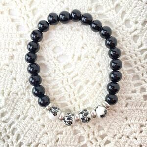 Floral Silver Black Beaded Stackable Bracelets Dainty