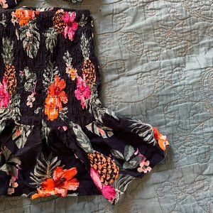 Navy blue with tropical flowers