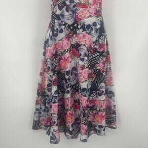 Floral Skull Halter Dress Sz XL Rockabilly Pinup Gothic Vintage Tattoo Halloween