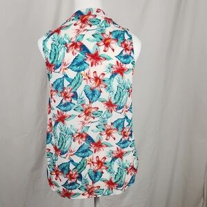 Elevate your wardrobe with this vibrant floral sleeveless blouse. Featuring a stunning red and blue pattern, this top is perfect for any occasion. Enjoy the comfort and style it brings to your outfit.