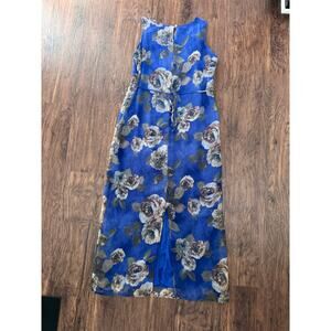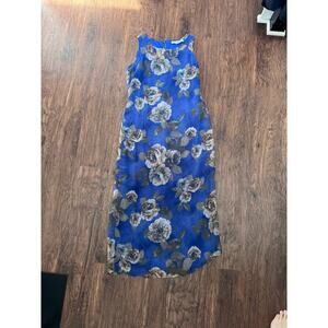 Floral Sleeveless Blue Vintage Dress 90s Sheer with Slip