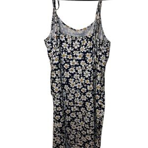 Charming sleeveless dress with a floral pattern. Features white and yellow flowers on a black background. *no size tag”