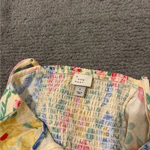 Vibrant floral sleeveless dress with a mix of colors. Perfect for a sunny day.