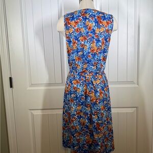 Embrace vibrant style with this sleeveless floral dress. Featuring a beautiful blend of blue and orange, this dress is perfect for any occasion. Enjoy comfort and elegance in one stunning piece.