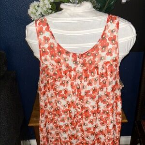 Embrace a vibrant look with this sleeveless floral dress. Featuring a lively red and white pattern, it's perfect for any occasion. Enjoy comfort and style in one beautiful piece.