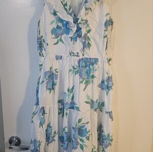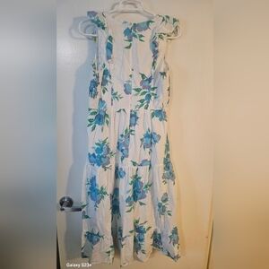 Embrace elegance with this sleeveless floral dress. Featuring a beautiful blue and white pattern, it's perfect for any occasion. Enjoy the comfort and style of this must-have piece.