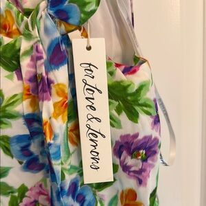 Vibrant floral sleeveless dress featuring a side cutout. Perfect for a summer outing.