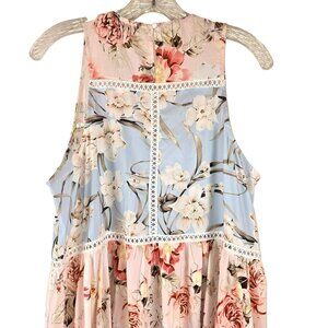 Floral Sleeveless Maxi Dress Lace Trim By Floryday Peach Blue Size XL NWT JH1771