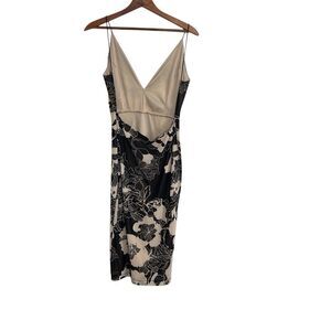 Floral Sleeveless Midi Bodycon Dress Black Tan Size Large